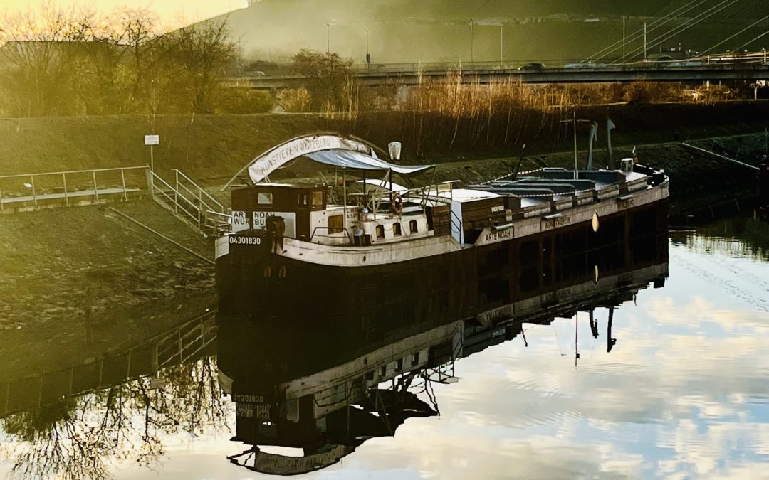 In monatelanger Arbeit haben Künstlerinnen und Kunstfreunde das Schiff renoviert und umgebaut: Es wurde zur ARTE NOAH. Während Details in Kombüse und Steuerhaus noch an die ursprüngliche Bestimmung als Frachtkahn erinnern, wurde der Laderaum zu einem großen Ausstellungsraum umfunktioniert. Die eingebauten Oberlichter schaffen ideale Lichtverhältnisse.